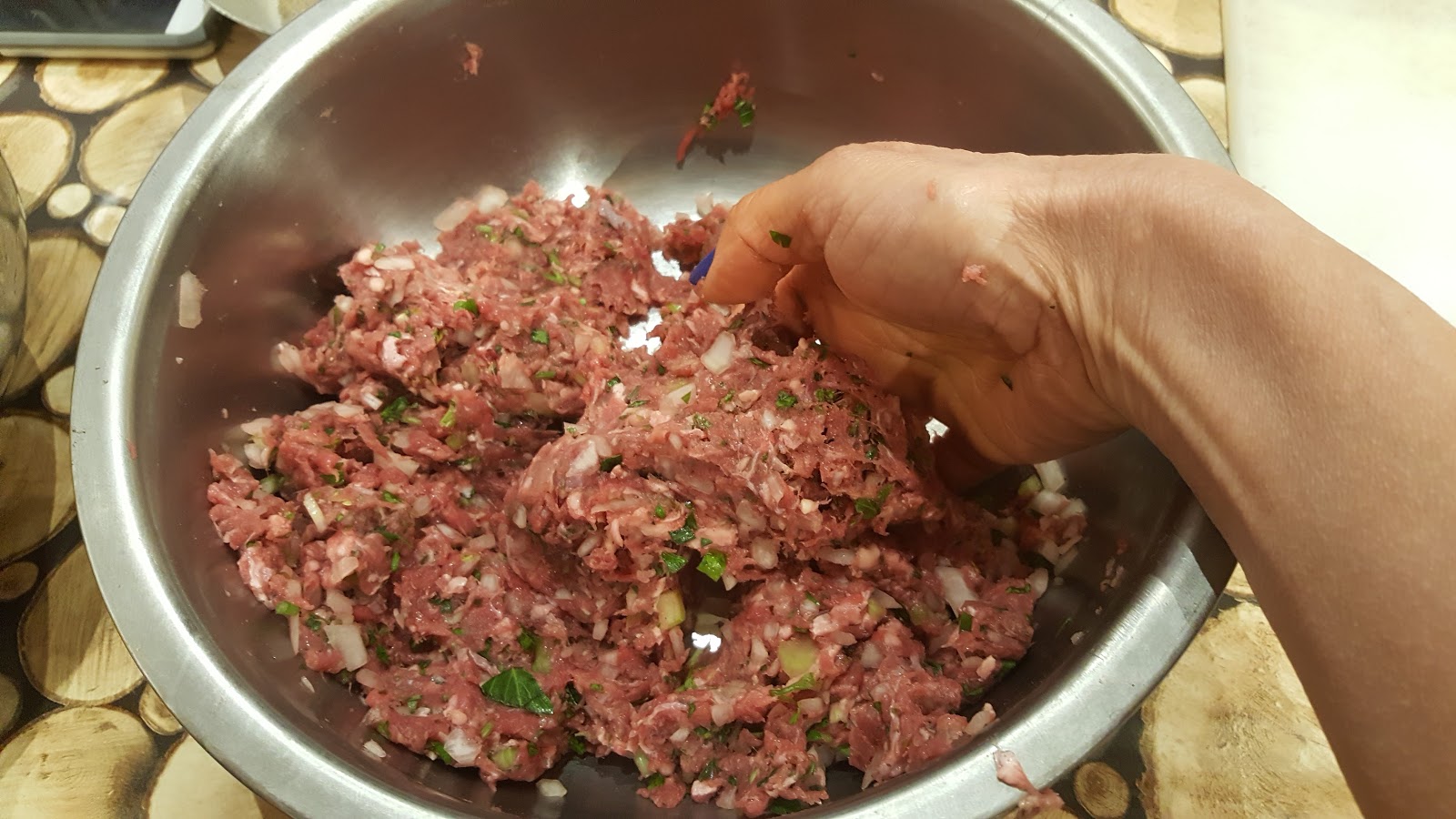 גומה בכל כדור עם האצבעות מניחים מעט מהמילוי במרכז הכדור וסוגרים חזרה .
